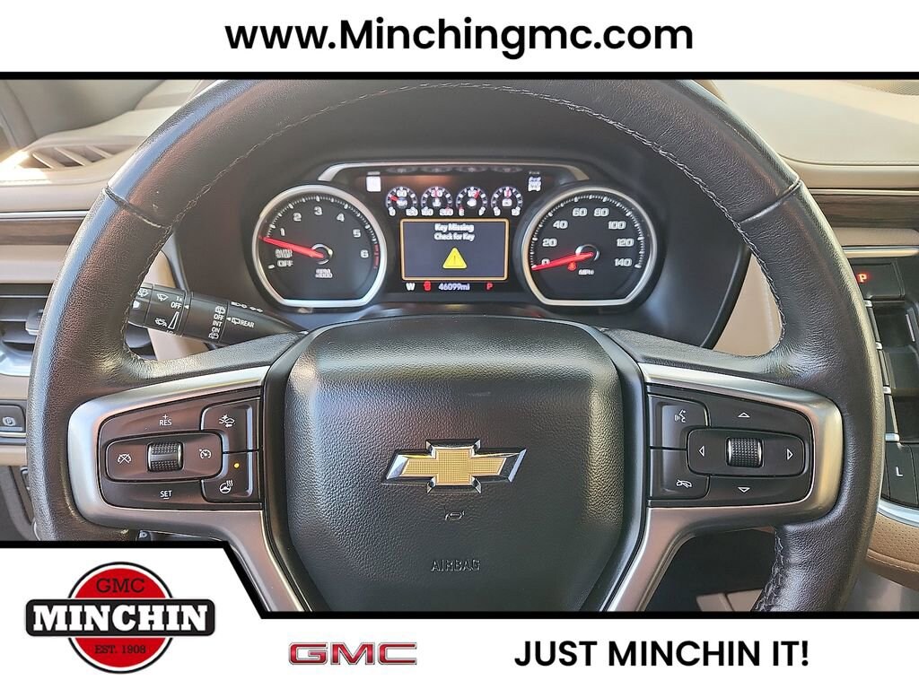 Priced below KBB Fair Purchase Price! Odometer is 31334 miles below market average! Clean CARFAX.PASSED - Dealership Quality Assurance Inspection, SERVICE RECORDS AVAILABLE, 15 Diagonal Multi-Color Head-Up Display, 1st & 2nd Row Color-Keyed Carpeted Floor Mats, 2 USB Data Ports, 2-Speed Active Electronic AutoTrac Transfer Case, 3rd Row 60/40 Power-Folding Split-Bench Seat, 4-Wheel Disc Brakes, Adaptive Cruise Control, Advanced Trailering Package, Advanced Trailering System, Auto-Dimming Inside Rear-View Mirror, Automatic Heated Steering Wheel, Brake assist, Bright Front & Rear Door Sill Plates, Chrome Door Handles w/Body-Color Strip, Chrome Mirror Caps, Color-Keyed Carpeting Floor Covering, Driver & Front Outboard Passenger Airbags, Dual Exhaust System, Dual-Pane Power Panoramic Sunroof, Emergency communication system: OnStar and Chevrolet connected services capable, Enhanced Automatic Emergency Braking, Enhanced Display & Alert Package, Enhanced Driver Information Center, Extra Capacity Cooling System, Floor Console w/Storage Area, Front & Rear Park Assist, Hands-Free Rear Power Programmable Liftgate, HD Radio, HD Surround Vision, Heated 2nd Row Outboard Seats, Hill Descent Control, Hitch Guidance w/Hitch View, Infotainment Display, Inside Rearview Auto-Dimming Rear Camera Mirror, Integrated Trailer Brake Controller, Lane Change Alert w/Side Blind Zone Alert, Lane Keep Assist w/Lane Departure Warning, Leather-Wrapped Steering Wheel, LED Daytime Running Lamps, Max Trailering Package, Memory Settings, Outside Heated Power-Adjustable Mirrors, Power Liftgate, Power Release 2nd Row Bucket Seats, Power Tilt & Telescopic Steering Column, Preferred Equipment Group 1LZ, Premium Package, Rear Camera Mirror Washer, Rear Cross Traffic Alert, Rear Pedestrian Alert, Remote Start, Safety Alert Seat, SiriusXM NavTraffic, SiriusXM Radio w/360L, Trailer Side Blind Zone Alert, Universal Home Remote.Black 2021 Chevrolet Tahoe Premier 4D Sport Utility 4WD 10-Speed Automatic with Overdrive EcoTec3 5.3L V8Awards:* JD Power Automotive Performance, Execution and Layout (APEAL) Study * ALG Residual Value